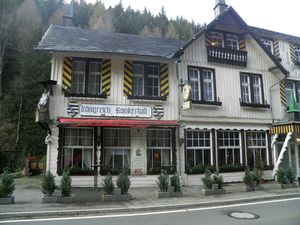 Das Hotel Königreich Romkerhall befindet sich im Okertal im Harz in Romkerhalle. Es gehört als gemeindefreies Gebiet zum Landkreis Goslar. Im 19. Jahrhundert war es an einen Gastwirt verpachtet und befindet sich inzwischen in Privatbesitz. Vom vorletzten Eigentümer wurde es "Hotel Königreich Romkerhall" genannt. Es wurden Adelstitel verkauft und Besucher müssen Verzehrbons als Visum erwerben. Das historische Gebäude aus dem Beginn des 19. Jahrhunderts brannte im Oktober 2023 ab. Kurz danach rief eine Organisation "Exilregierung Deutsches Reich"[19] dazu auf, für einen Wiederaufbau zu spenden. .."Dieses Geld, sowie alle Spenden werden für die dringenden Arbeiten des Königreich Romkerhall im Deutschen Reich verwendet".. Diese Gruppe behauptet das "Königreich Romkerhall" von einem Baron Walter Lechner erworben zu haben. Lechner, der ansonsten falsche Adeltitel verkaufte, ist tatsächlich nur der letzte Eigentümer des Schweinestalls gegenüber dem abgebrannten Hotel