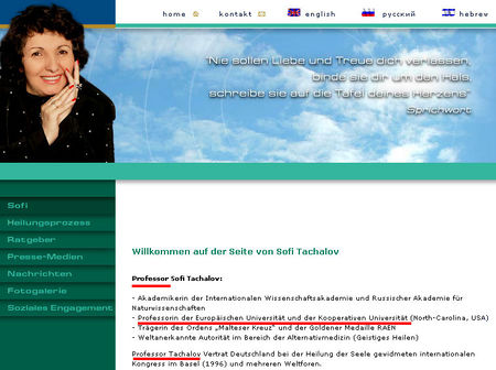 Sofi Tachalov mit Nennung von akdemischen Scheintiteln (Bild: eigene Webseite)