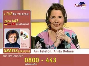 - ↑ http://dieflimmerkiste2.wordpress.com/2007/10/25/zuschauerin-telefoniert-sich-bei-astro-tv-arm/