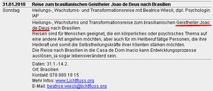 Auszug aus Spuren-Veranstaltungsliste mit Werbung für eine Veranstaltung von João de Deus[3]