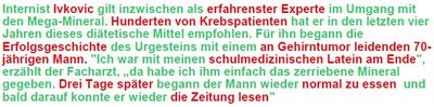 - "Das neuste Wundermittel kommt aus Kroatien: Megamin Kapseln werden zwar als Nahrungsergänzung in den Verkehr gebracht, jedoch vor allem im Internet für Indikationen wie Diabetes, Krebs, Magengeschwüre, Virusinfektionen, Schizophrenie, Neurodermitis und viele mehr beworben. Es handelt sich somit um ein Arzneimittel nach Paragraph 2 Absatz 1 Arzneimittelgesetz, das mangels Zulassung nicht verkehrsfähig ist. [...] 'Wirkstoff' dieses Mittels sind natürliche Zeolithe, die in Kroatien abgebaut werden. Zeolithe sind Kalk- oder Alkalitonerdesilikate, die große Mengen Kristallwasser enthalten können und ihre Alkali-Ionen reversibel zum Beispiel gegen Calciumionen austauschen können. Sie werden in Industrie und Landwirtschaft äußerst vielfältig verwendet, zum Beispiel in Wasch- und Zahnpflegemitteln, Baumaterialien und Wasserfiltern, können aber auch als Hilfsstoffe in Arzneimitteln eingesetzt werden. Megamin soll "tribo-mechanisch aktivierten", das heißt feinst vermahlenen Zeolith ("TMAZ") enthalten. Nach unserer Kenntnis liegen keine wissenschaftlichen Belege für Wirksamkeit und Unbedenklichkeit vor".[6]