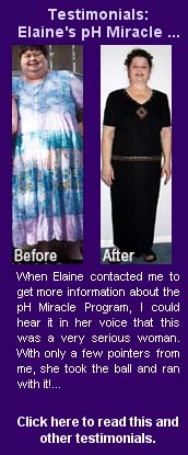 - ↑ Zitat aus einem Werbetext, der im Internet verbreitet wird: "The pH level (the acid-alkaline measurement) of our internal fluids affects every cell in our bodies. Extended acid imbalances of any kind are not well tolerated by the body. Indeed, the entire metabolic process depends on a balanced internal alkaline environment. A chronically over-acidic pH corrodes body tissue, slowly eating into the 60,000 miles of veins and arteries like acid eating into marble. If left unchecked, it will interrupt all cellular activities and functions, from the beating of your heart to the neural firing of your brain. In summary, over-acidification interferes with life itself leading to all sickness and disease!" Quelle: [1]