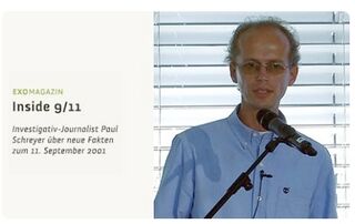 - "Mein Name ist Paul Schreyer, ich bin freier Journalist für die Magazine "Telepolis", "Hintergrund" und "Ossietzky", sowie Autor des Buches "Inside 9/11". Am 11. September 2001 war ich 24 Jahre alt. Wie wohl die meisten anderen Menschen auch, hatte ich zuerst keinerlei Zweifel an den offiziellen Erklärungen zur mutmaßlichen Täterschaft Osama bin Ladens und der Al-Qaida. Erst einige Wochen nach den Anschlägen erfuhr ich eher zufällig im Internet von Fakten, die im Fernsehen und in der Zeitung nicht erwähnt worden waren. Fakten, die mich zum Nachdenken brachten.