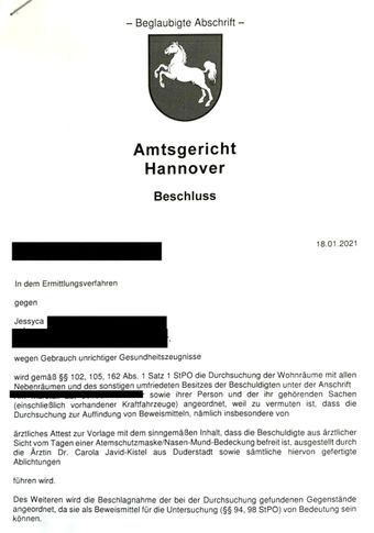 43. https://www.haz.de/Hannover/Aus-der-Stadt/Falsche-Atteste-fuer-Maskenverweigerer-Arztpraxis-in-Duderstadt-durchsucht