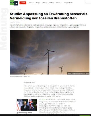 Artikel beim russischen Staatssender RT DE von Dagmar Henn zum Thema Klimalüge (August 2023)